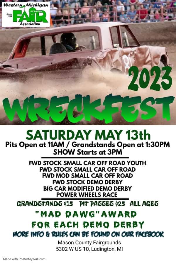 Pits open at 11 a.m.; pit tickets are $25. Grandstands open at 1:30 p.m.; tickets are $15 for all ages. Show starts at 3 p.m. More info at https://www.facebook.com/WesternMichiganFairImages
